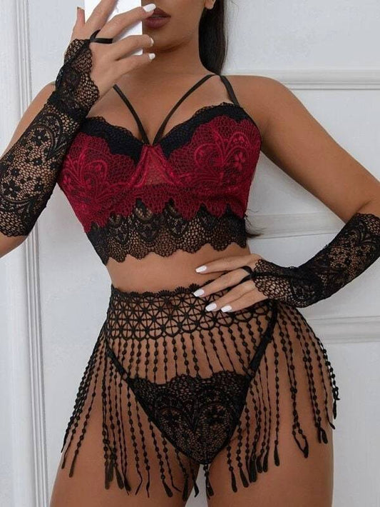 4 Pcs Sweet Whisper Embroidered Garter Lingerie Set without Stockings