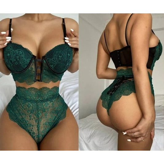 Amazing Grace Mesh Underwire Garter Lingerie Set