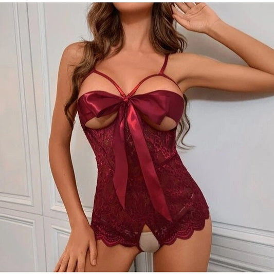 Joy Touch Bow Front Crotchless Teddy Lingerie