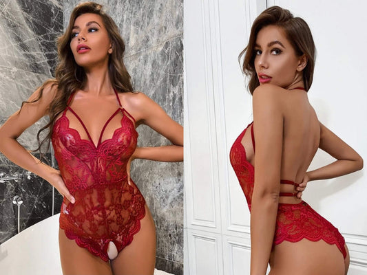 Floral Lace Scallop Trim Plunging Teddy Bodysuit