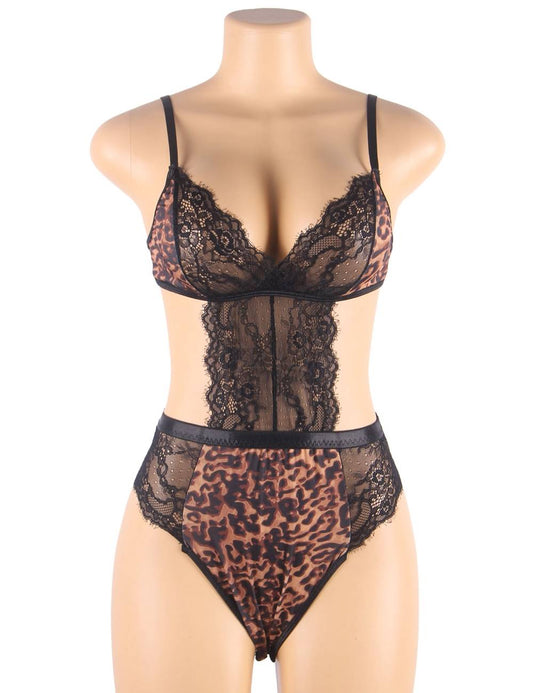 Seductions Kingdom Leopard Print Lace Teddy Bodysuit Lingerie