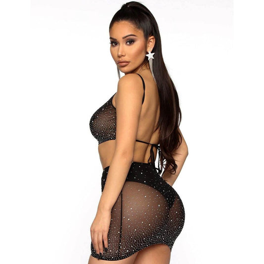 Betty Sparkle Glitter Rhinestone Fishnet Mesh Sexy lingerie bodysuit
