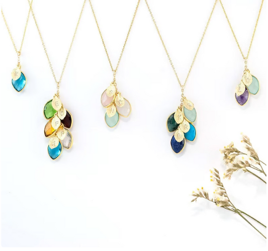 Custom Stone Leaf Necklace - Gold Plated Natural Crystal Jewelry