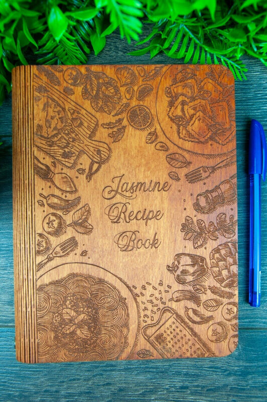 Personalized Wooden Recipe Book Binder Custom Journal Cookbook Gift