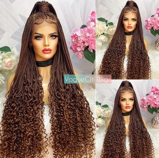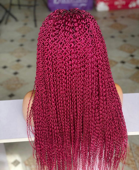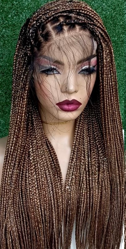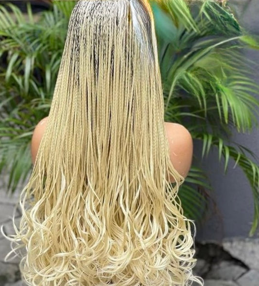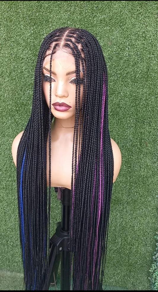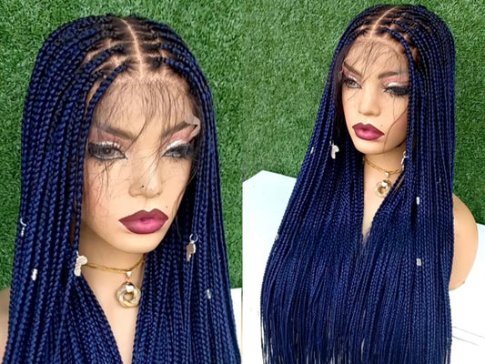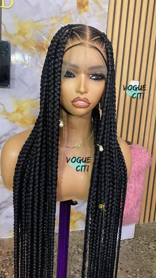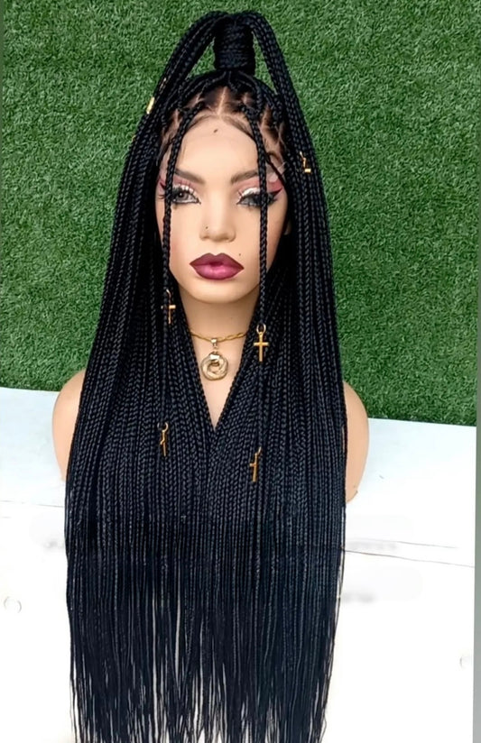Braided wig,Knotless big braids, chunky box braids, beads, butt length braids, full lace wig for black women, custom made wig color black.