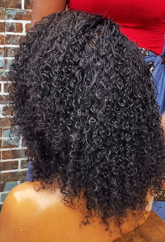 Braided wig, Knotless big braids, chunky box braids, beads, butt length braids, full lace wig for black women, custom made wig color black.
