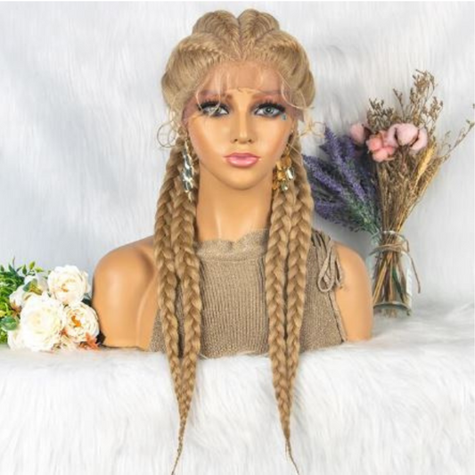 Jumbo Cornrow Braided Wigs 360 Swiss Lace Front Wig Double Dutch Braid